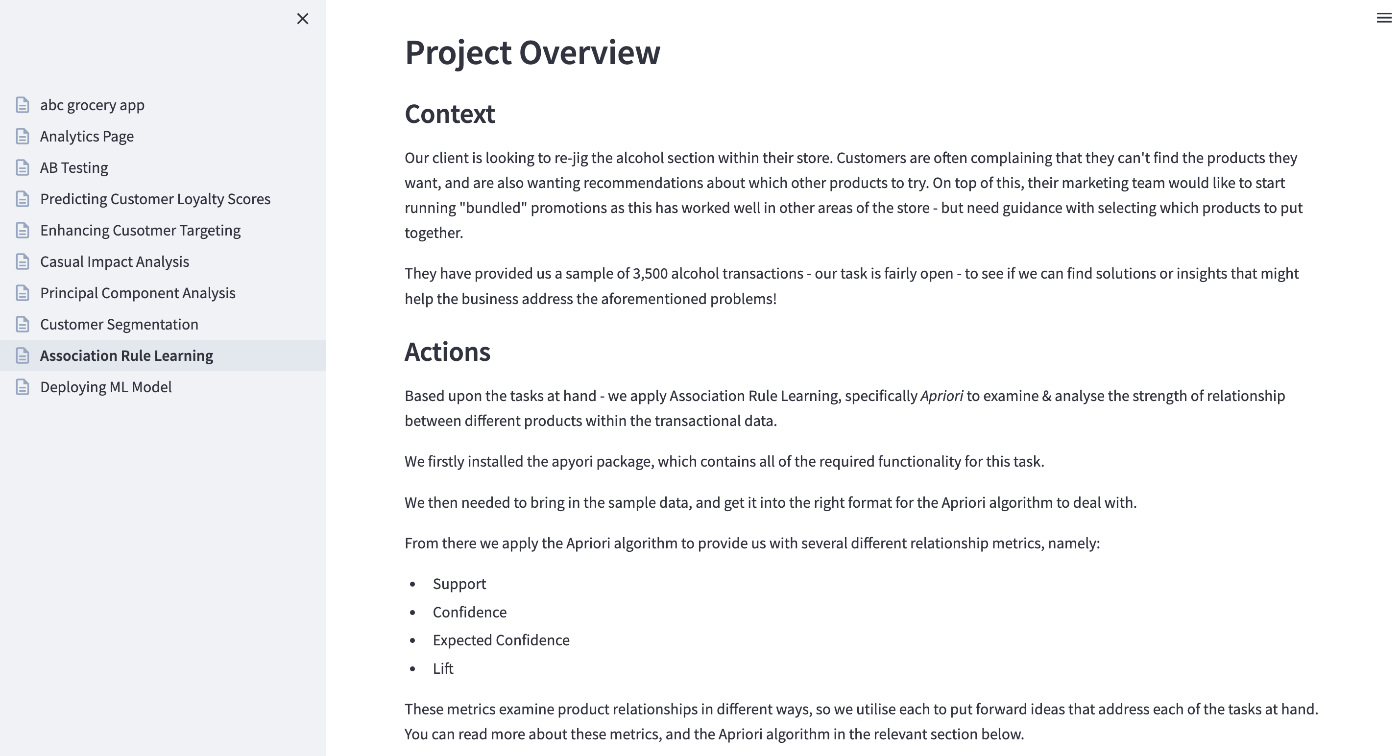 In this project we use Association Rule Learning to analyse the transactional relationships & dependencies between products in the alcohol section of a grocery store.